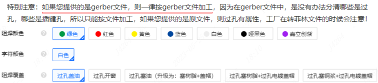 ① 对于输出Gerber下单的,嘉立创下单平台选择的"过孔盖油"或"过孔开窗"选项无效,过孔属性依Gerber文件为准