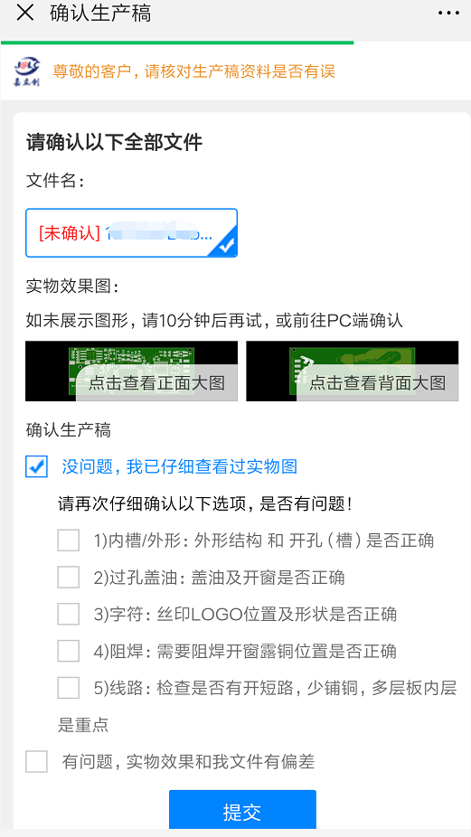 嘉立创生产稿确认支持手机端确认,更加方便以快捷!