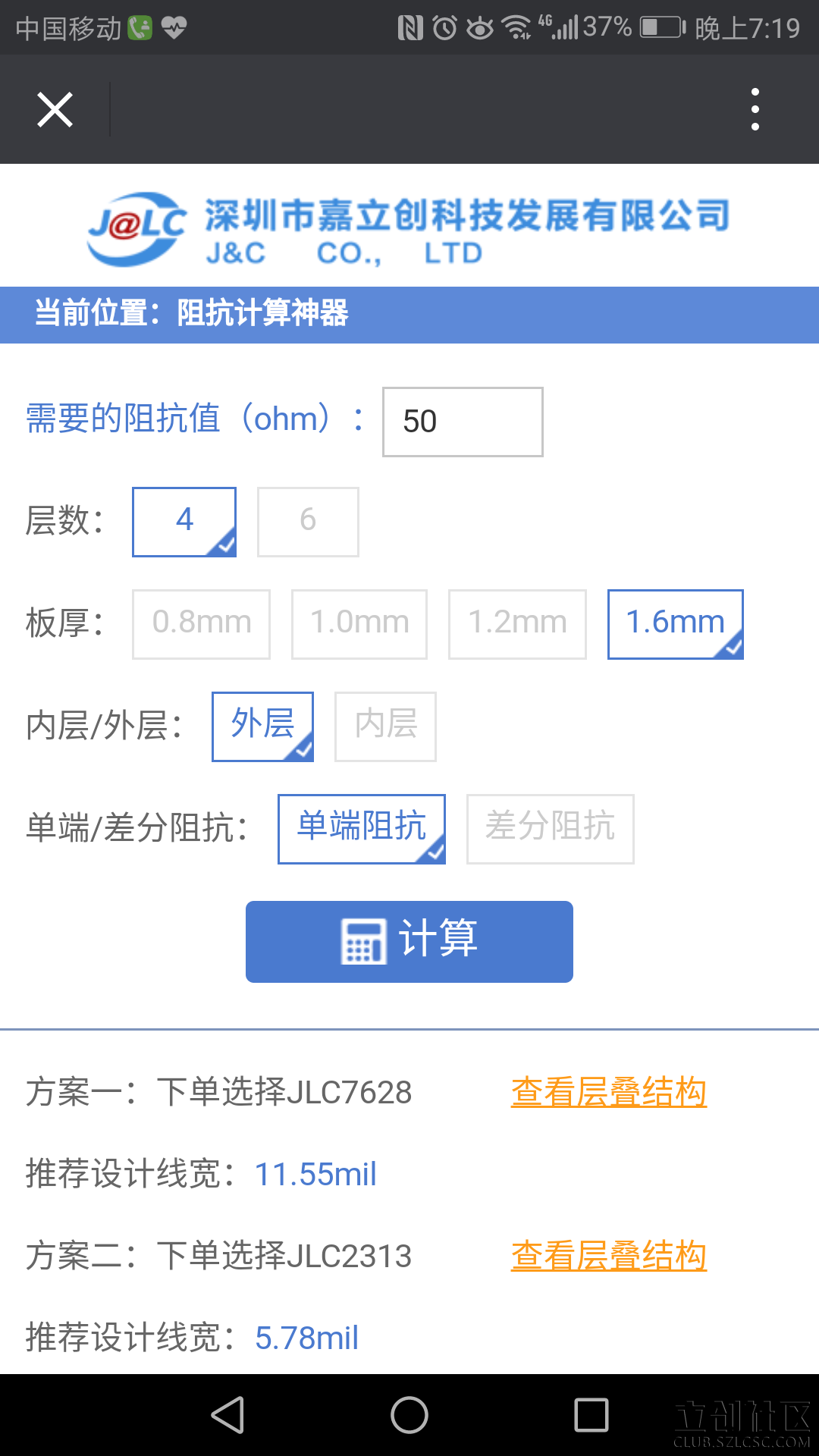 3)为了方便工程师设计阻抗,此刻推出“嘉立创阻抗计算神器”