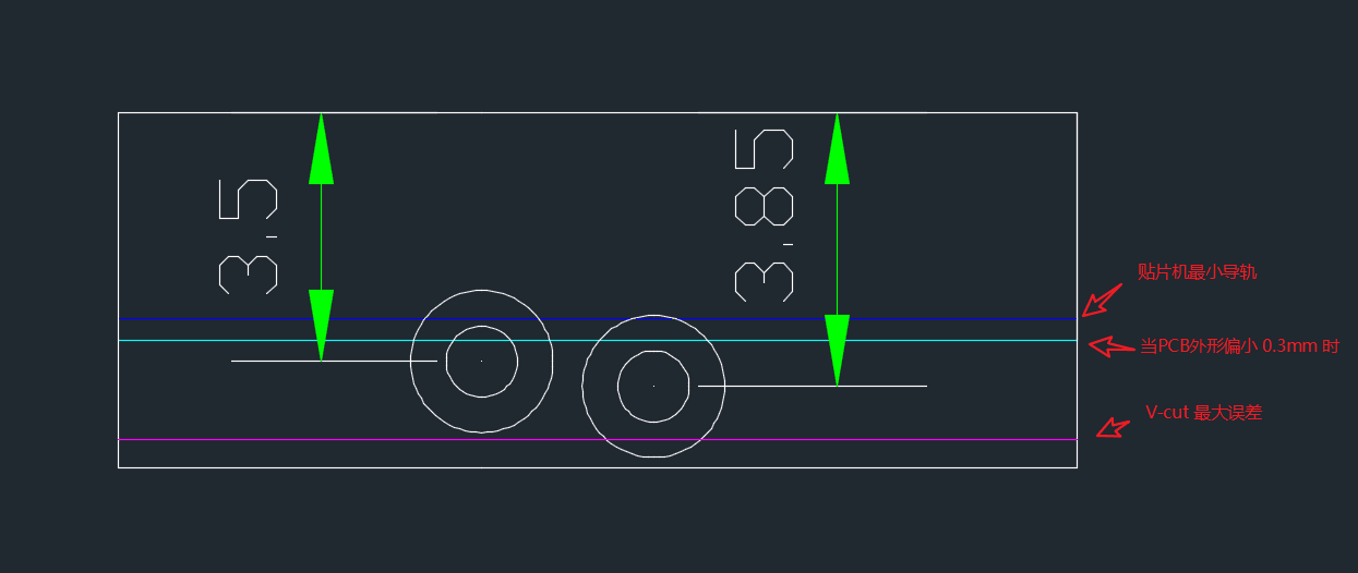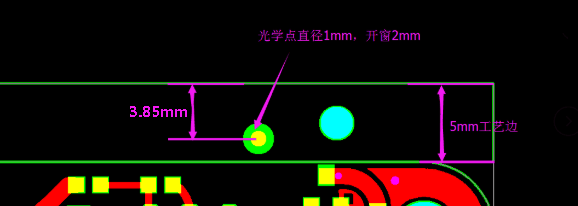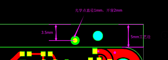 为了适应一些夹边(导轨)为3mm宽度贴片机使用, 让贴片机更容易抓取到Mark点。