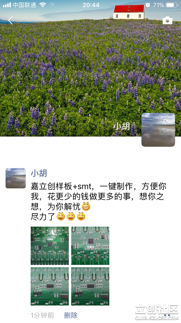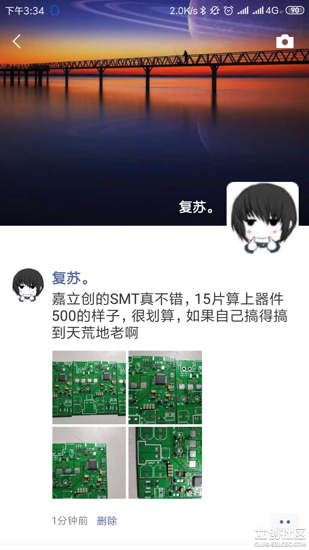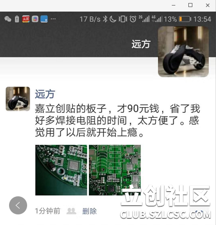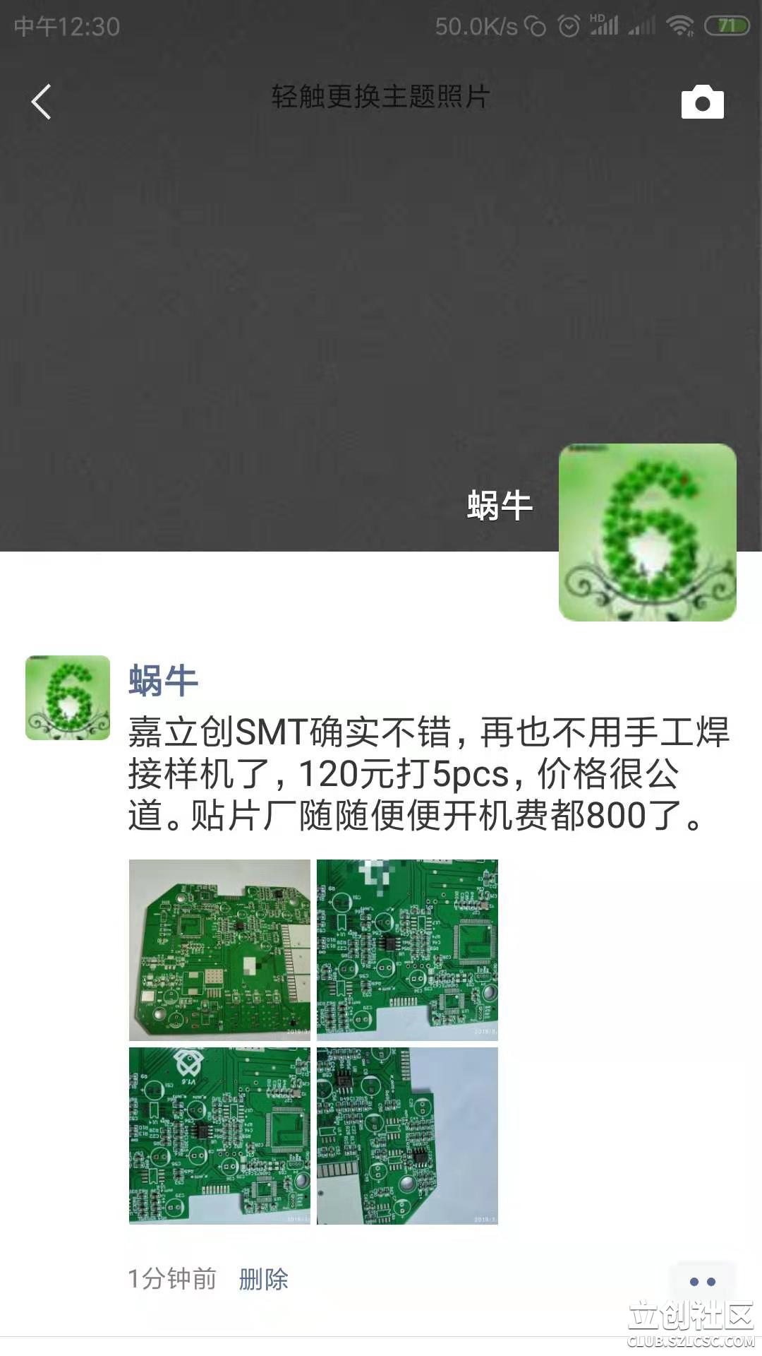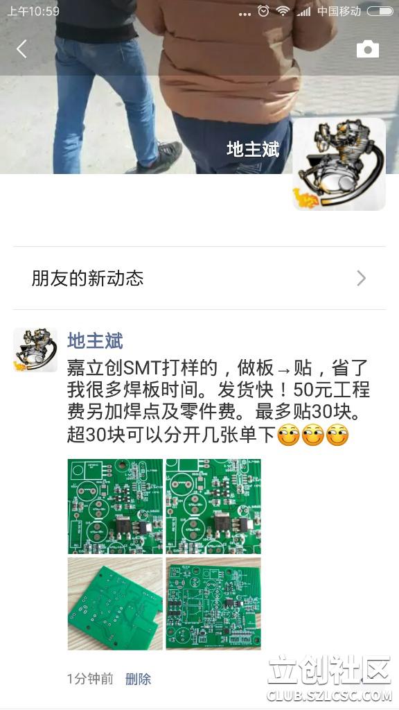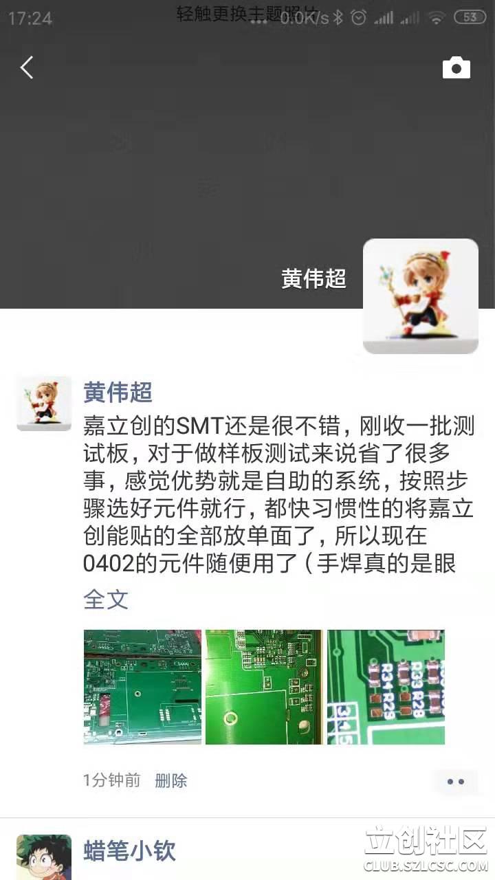 得到了大家的积极参与,在发表的朋友圈中对于我们的认可让我们信心满满。。。。感谢你们对于嘉立创SMT打样的认可以支持,下面是在社区的晒图图片,因为太多,以下是部分: