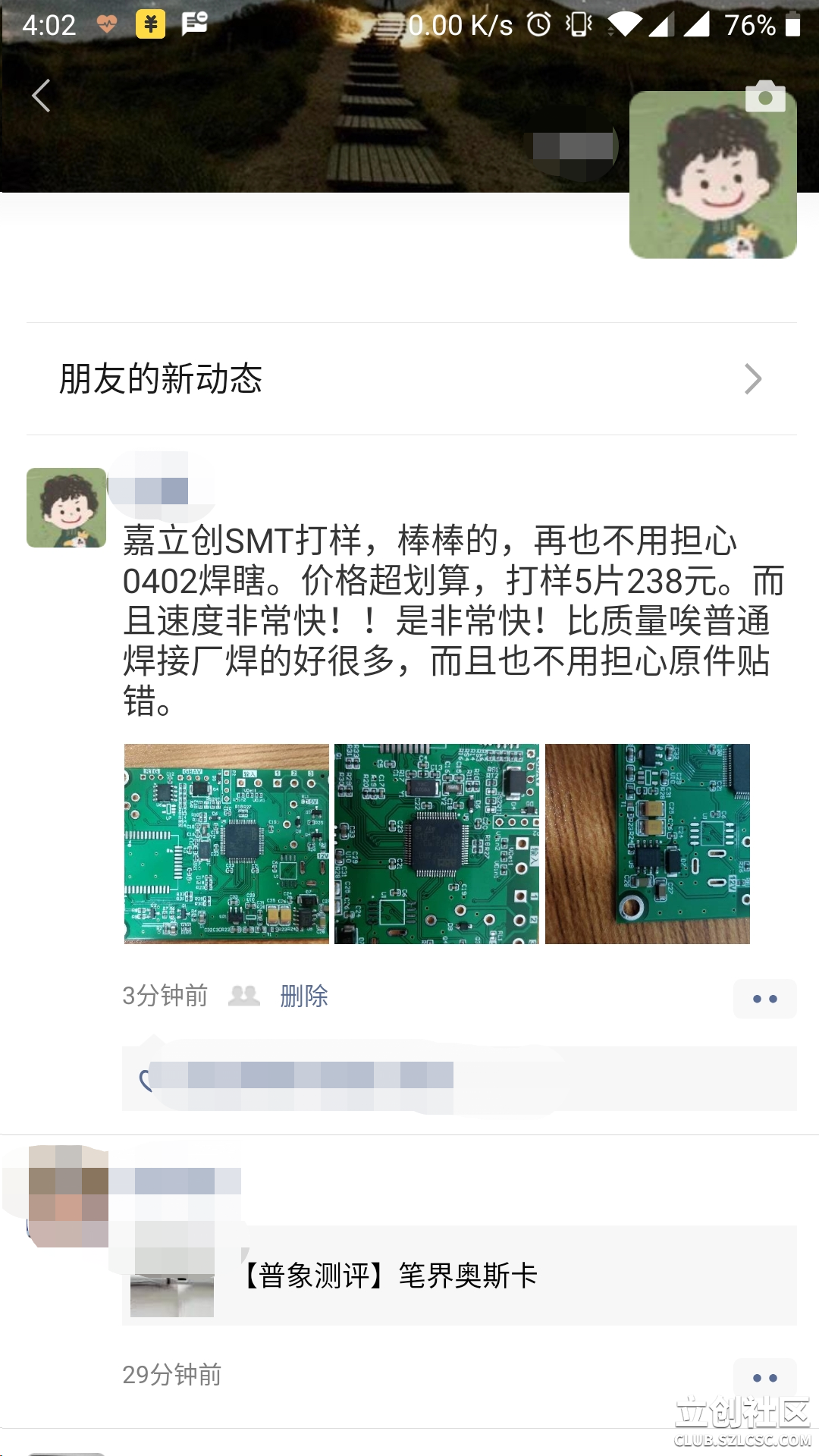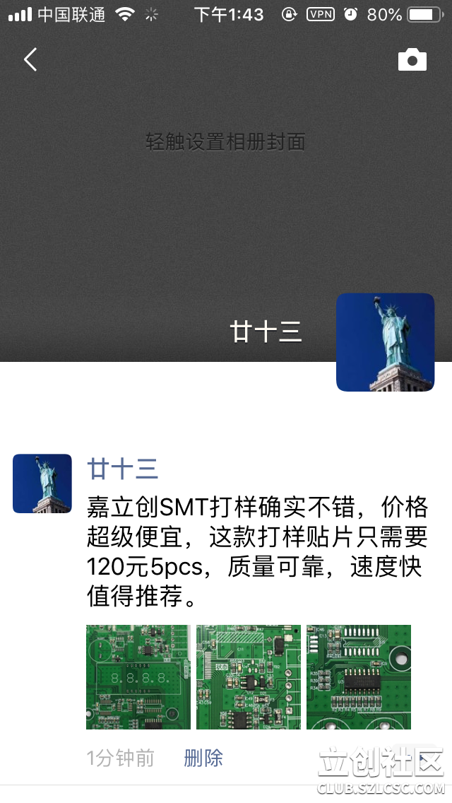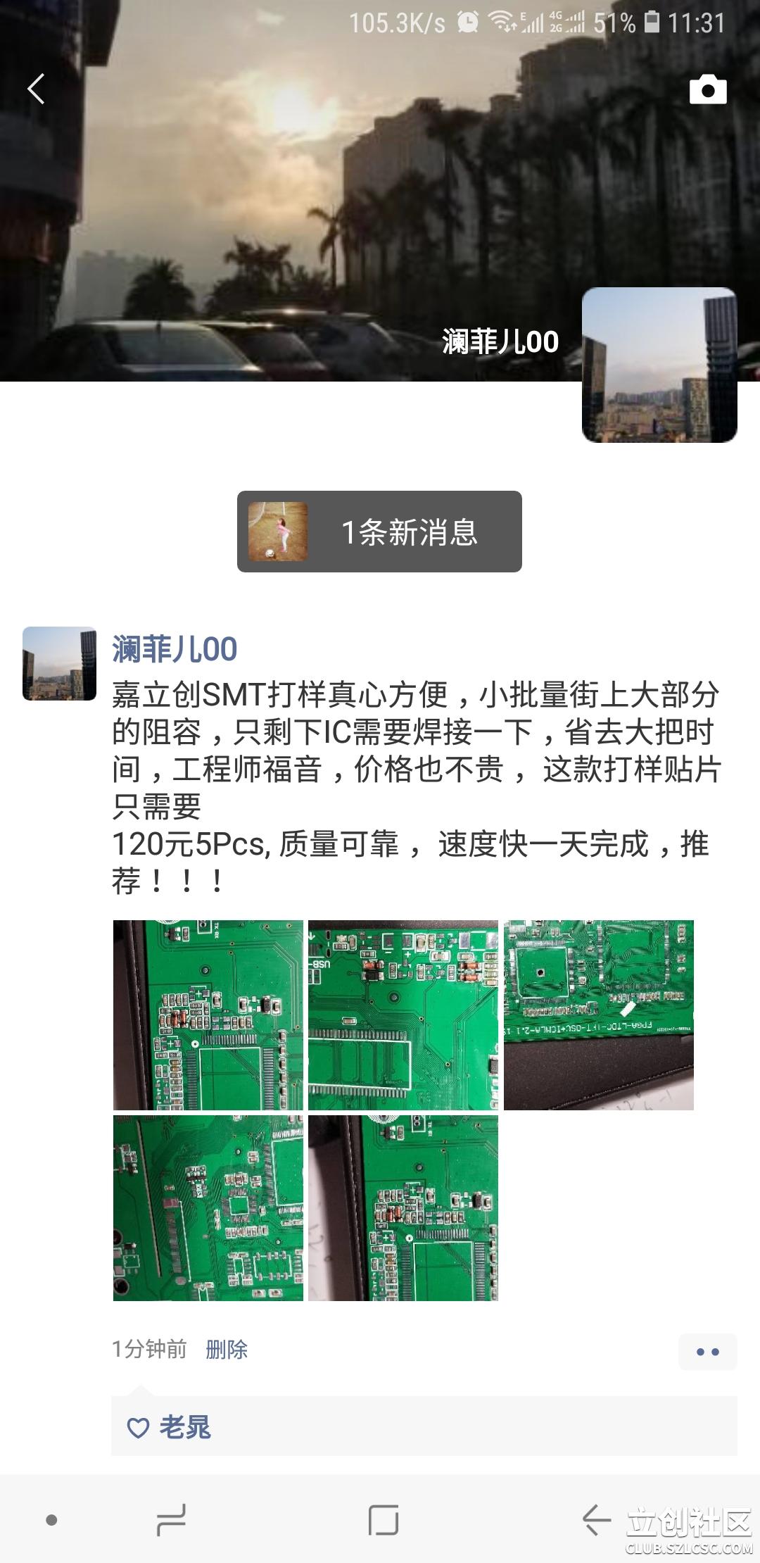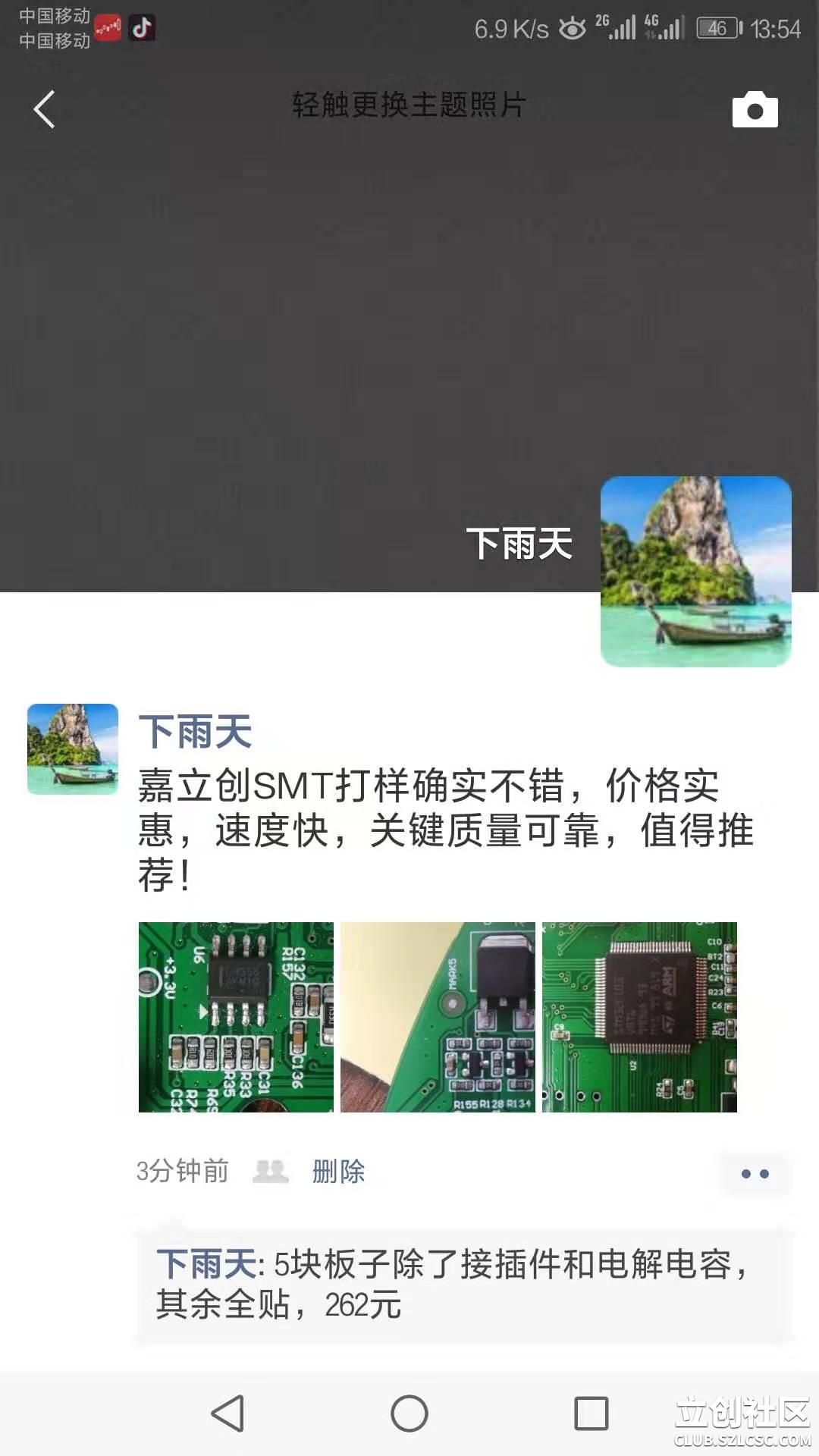 得到了大家的积极参与,在发表的朋友圈中对于我们的认可让我们信心满满。。。。感谢你们对于嘉立创SMT打样的认可以支持,下面是在社区的晒图图片,因为太多,以下是部分: