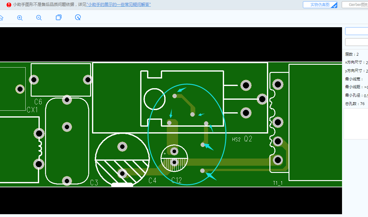 下图运用“嘉立创下单小助手”查看更改好的文件,看效果图钻孔文件正常显示出来。