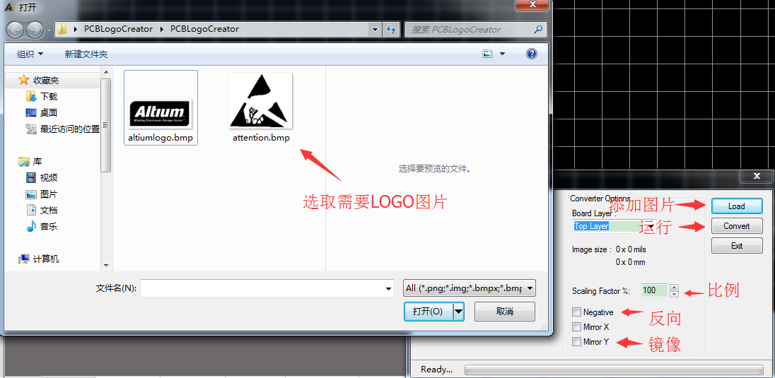 然后利用PCB Logo Creator生成一个logo,没有这个工具的自己去下载,下载完放到一个目录里。