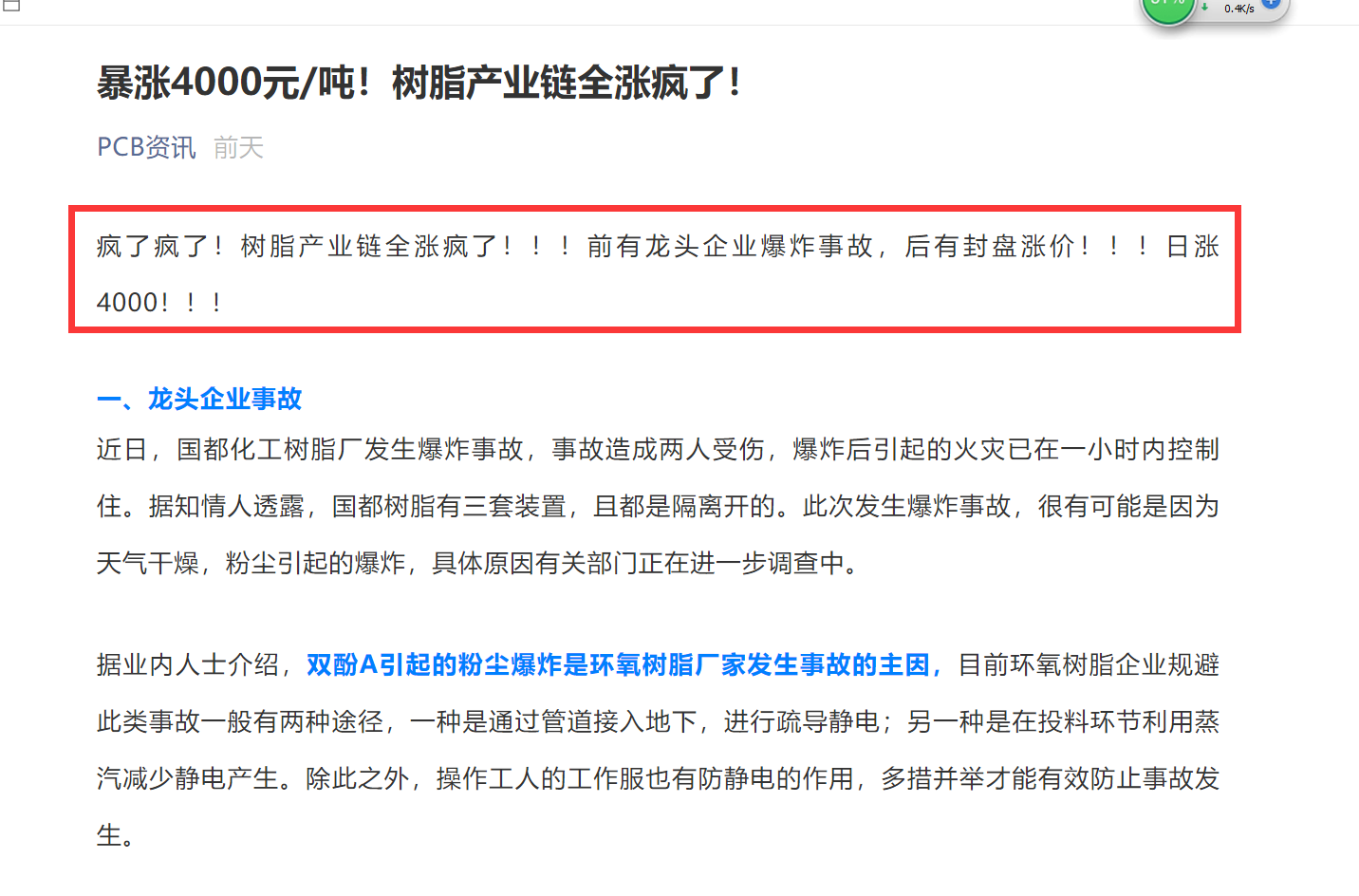 2:板材的核心原材料树脂以经报价封盘,进一步加剧了板材的上涨及短缺!