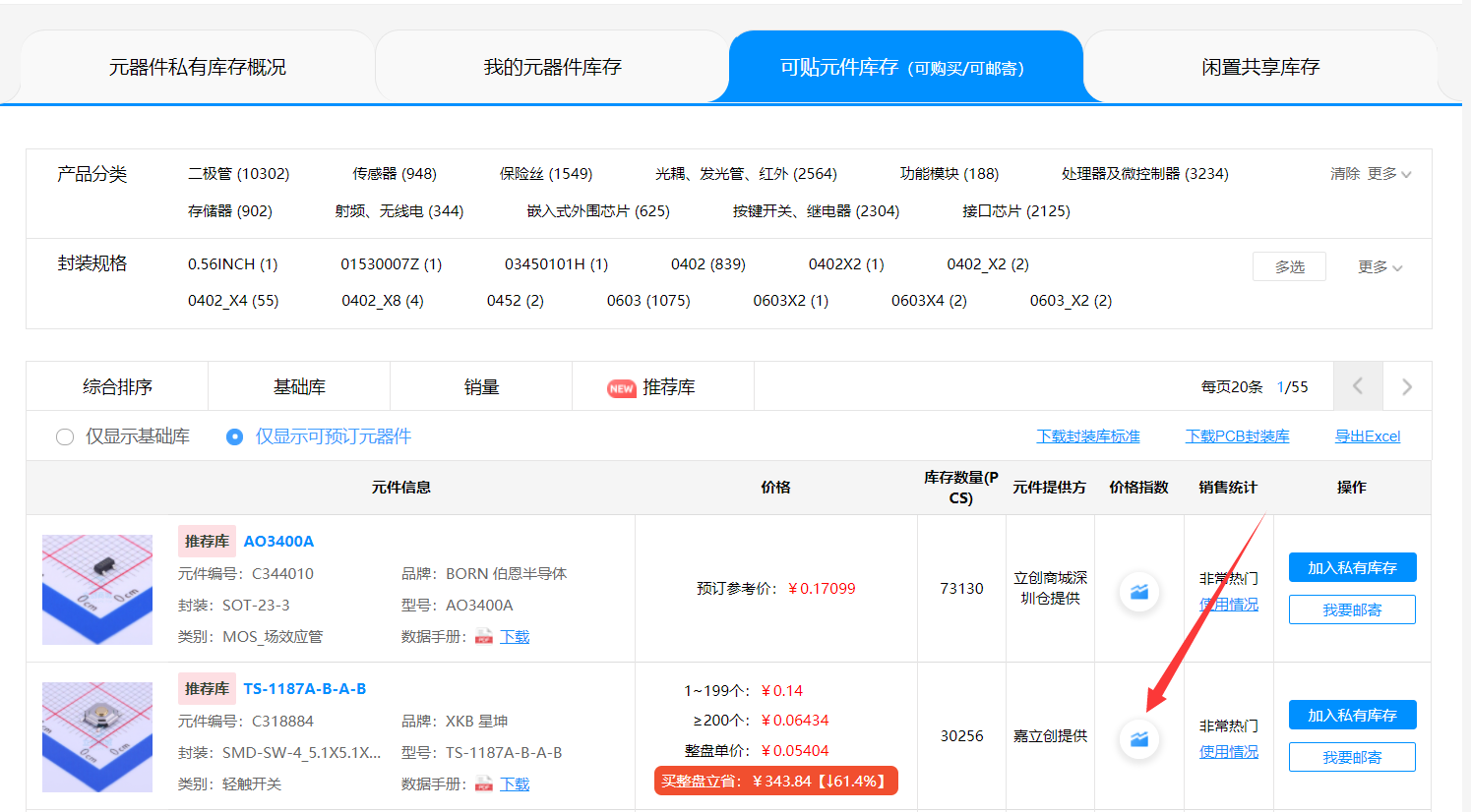 为了指导客户更好的做好”整盘私有库存备货”,提供采购数据依据,嘉立创SMT元器件上线“嘉立创价格指数” 以方便客户