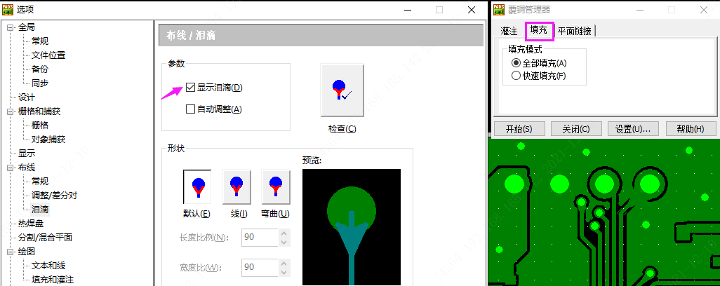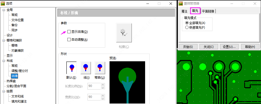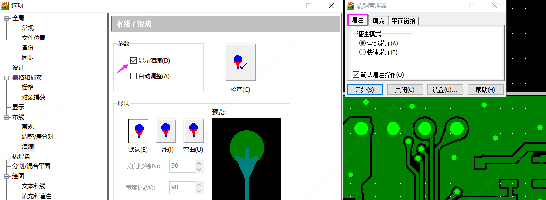 对于设计有泪滴要求的,正确的操作方法: