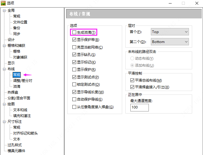 在PADS界面中,工具-选项(快捷键:Ctrl+<Enter>)-常规-生成泪滴选项打勾, 然后就可以设置泪滴了