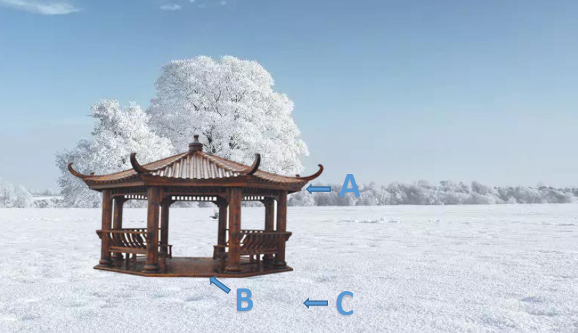 凉亭(A)就像阻焊层,一场大雪后,被凉亭挡住的地面(B)不会有白雪(阻焊油墨),而没有被凉亭挡住的地面(C)全部被白雪(阻焊油墨)盖住。顺着这个思路,我们回到PCB设计阻焊上面: