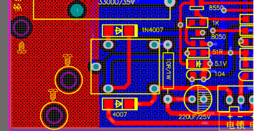 PCB打样最近接到客户反馈挖错孔,外形切大或切小,经了解文件设计大圈包小圈(大孔包小孔),或是二个外形线,此类歧义易产生误判。如下图错误设计: