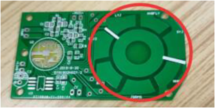 阻焊层solder mask不开窗,弧线是无法漏铜,会涂上一层阻焊油的无法上锡的