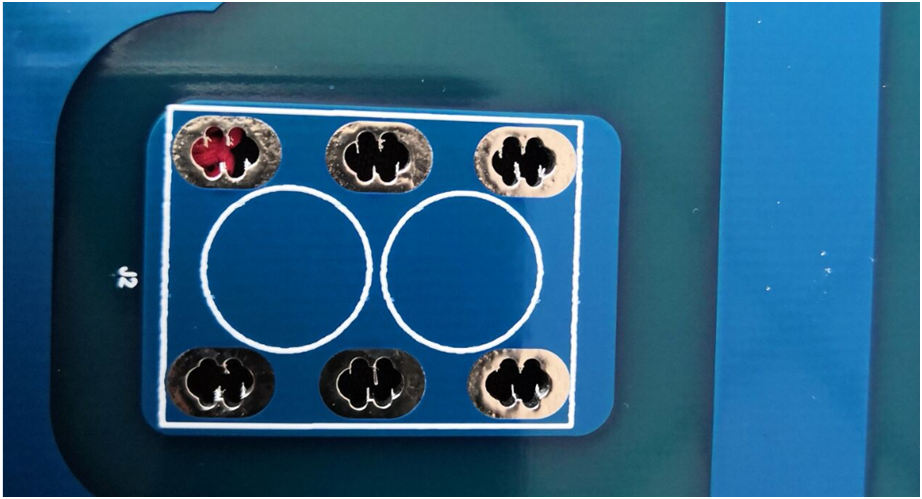 我司常规制作的孔壁有铜的槽孔是直线型的椭圆形槽孔,对于十字型交叉SLOT槽或者槽孔中间放置其它圆孔等异形孔壁有铜的槽孔目前生产不好控制,孔位容易偏位或产生大量毛刺 ,如下图