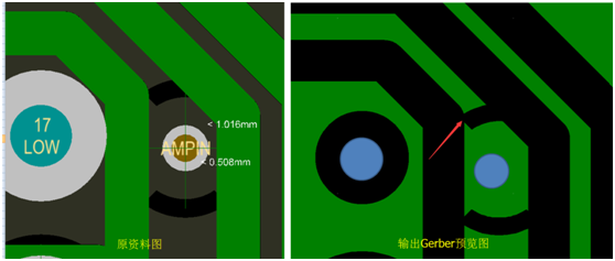 把相连的两个焊盘点输出Gerber同时放大查看……