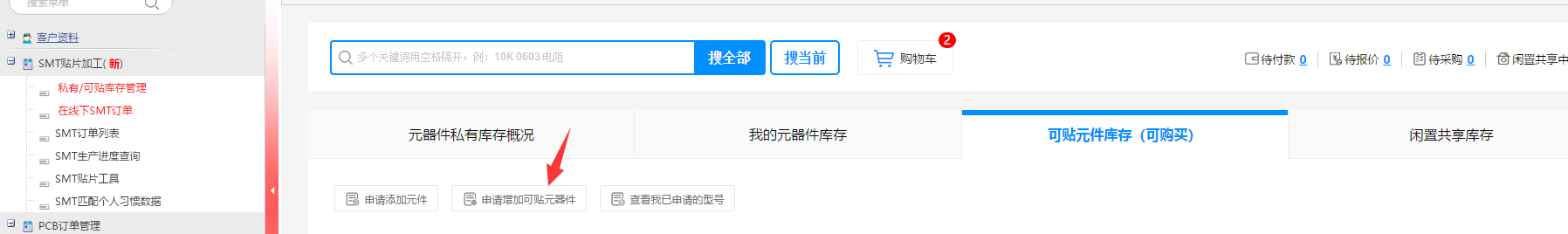 在可贴列表内没有到找您需要的型号,可以先申请增加型号。等型号审核通过后,就可以预订器件。