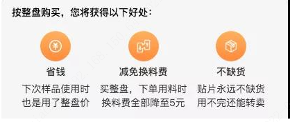有很多客户上次打样贴片有库存,下次贴时本料没有库存,库存不可控,如果是先整盘购买后使用,则你可以按你的用料计划做私有库存,不存在无货的情况。