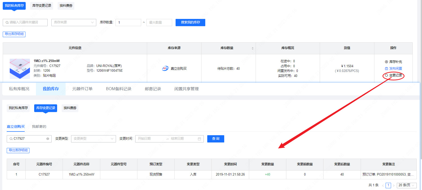 6.所有购买的器件,需要等器件在“我的库存”内可以看到数量,下单匹配上,贴片的时候才可以贴上。