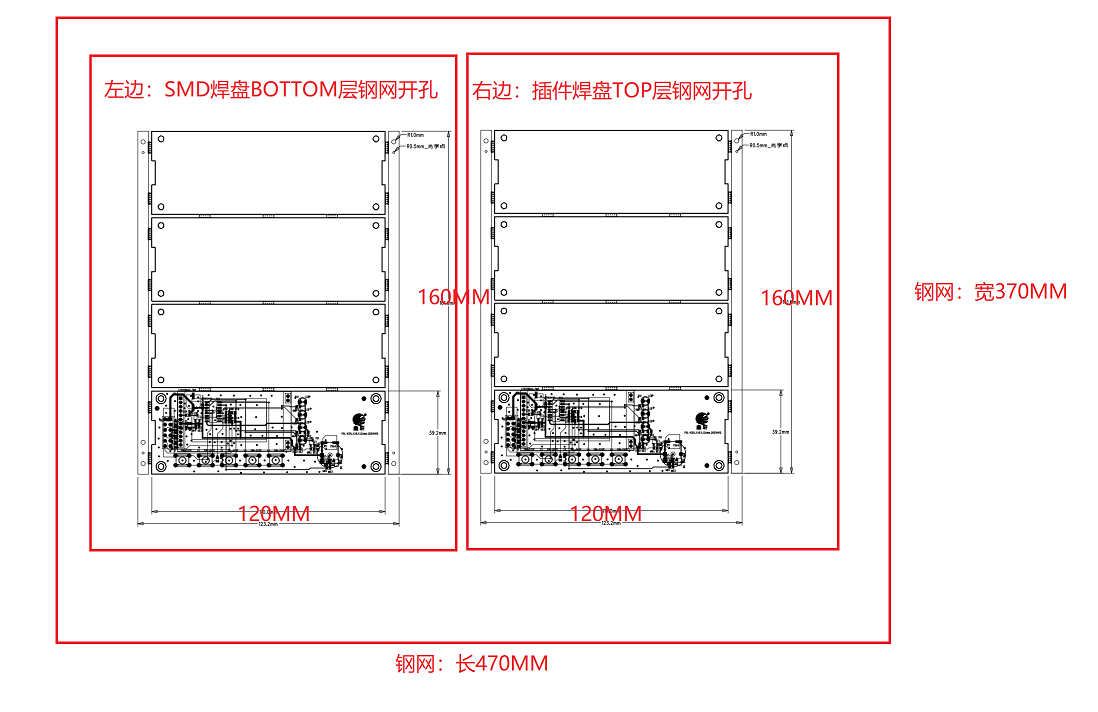 <p style=‘white-space: normal;’><img src=‘/uploadfiles/image/20210415/1618458973277087374.png’ title=‘1618458973277087374.png’ alt=‘image.png’/><br /><p style=‘white-space: normal;’><br/><br /><p style=‘white-space: normal;’>您好,我之前可能表达有误。<br /><p style=‘white-space: normal;’>我的意思是,我提供一个已经拼好板的4拼板的Gerber文件, 给你们开钢网的时候, 帮我 在钢网的 <br /><p style=‘white-space: normal;’>左边开4拼板的BOTTOM层的SMD焊盘孔,<br /><p style=‘white-space: normal;’>右边开4拼板的TOP层的插件焊盘孔。<br /><br/>