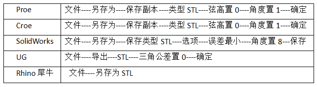 为方便您进行文件格式转换操作,我们整理了各类软件转换STL格式的参数设置: