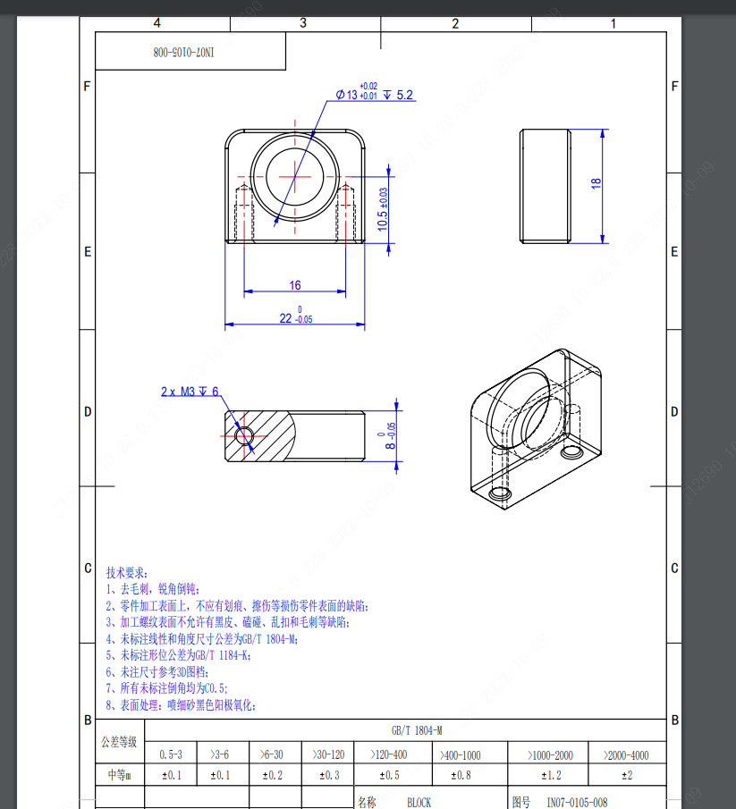 如果零件图纸上没有标注特定公差,那么将按标准公差(±0.1mm或更高)进行加工,如果有特殊公差加工要求,务必提供2D图纸并对应标注。