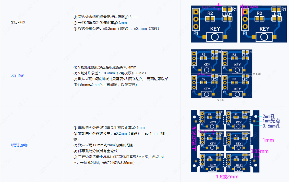 在布线及放置焊盘铜面时,请调整好,保证距离板边槽孔有0.3mm以上的安全间隙(若是V割边的,需要0.4mm以上的距离)