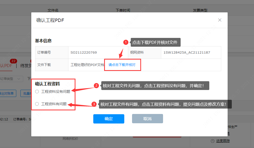 我的钢网订单需要先确认PDF文档,系统如何确认?