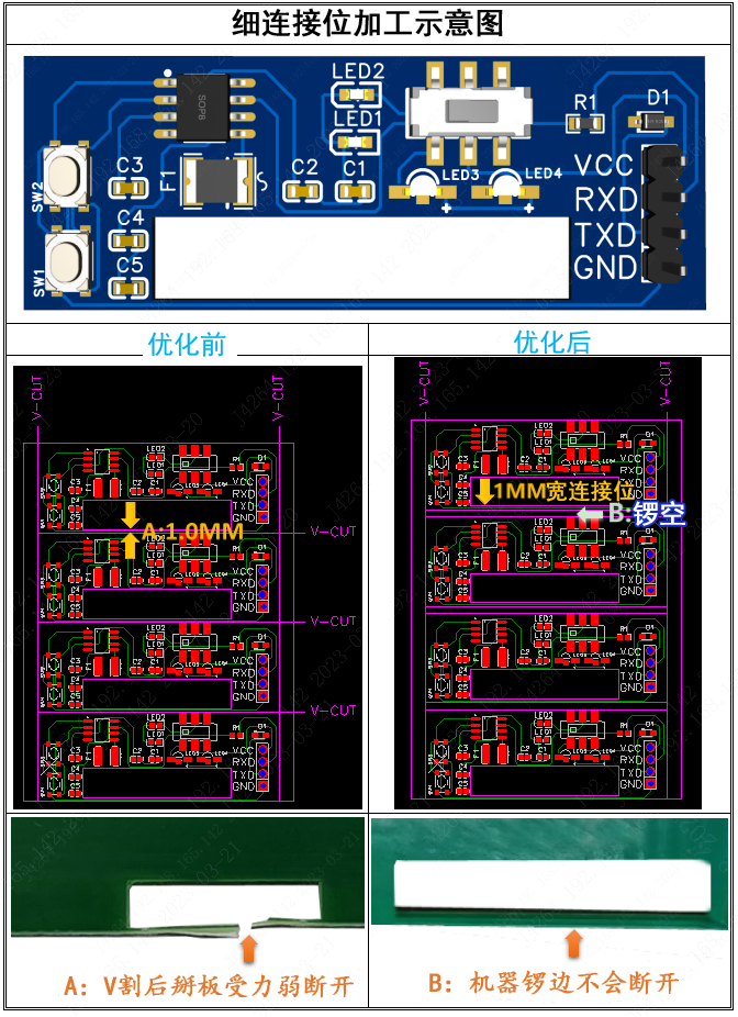 设计优化:如何避免V割细窄连接位掰板断开