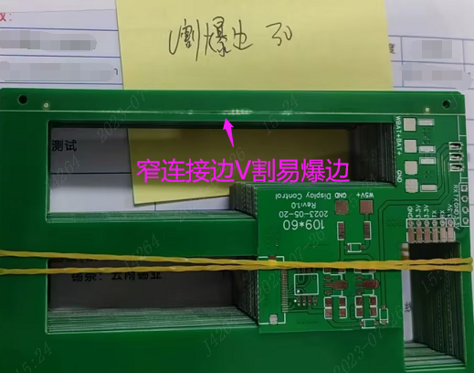 窄的连接边V割时,也易出现爆边的情况,此类的板边建议锣边处理(窄板边宽2MM以上)
