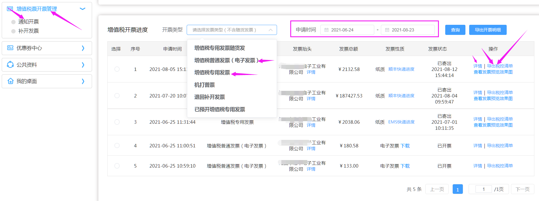 很多客户,希望能把开票明细导出EXCEL,嘉立创也提供了导出功能,操作如下图: