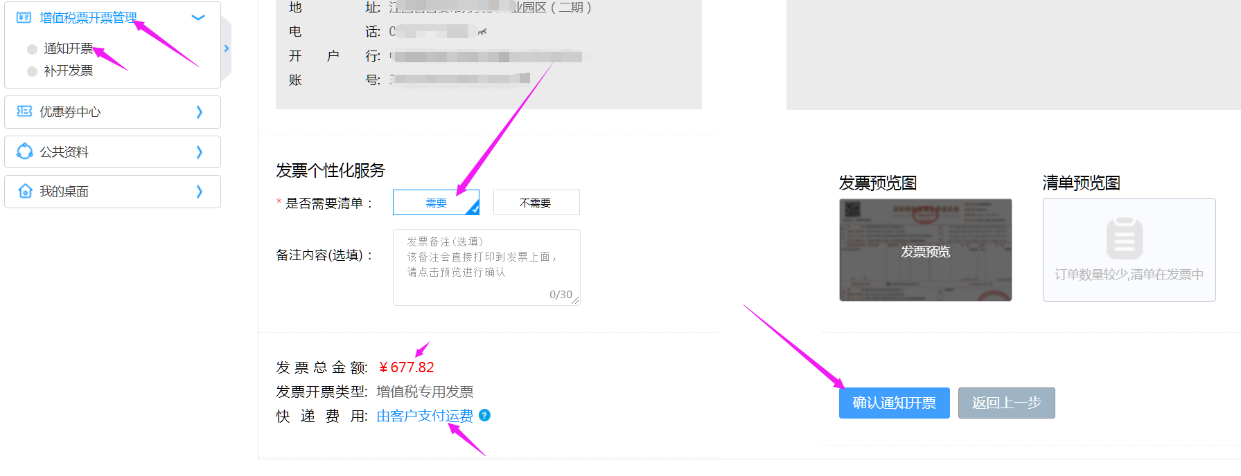 通知开票方式二:累计开票订单部分开票【通知开票】