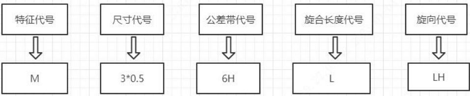 旋向代号 | 当为右旋螺纹时不标注,为左旋螺纹时标注 LH |