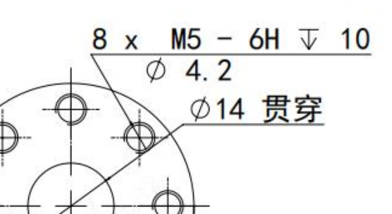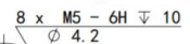 :8 个底孔直径为 4.2、螺纹直径为 M5、有效螺纹深度为 10,内螺纹公差为 6H 的螺纹孔;