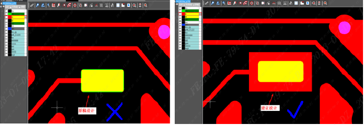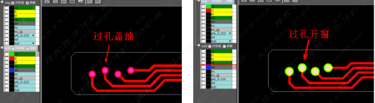(2)过孔离防焊开窗保证0.2mm以上,否则会导致孔边露铜