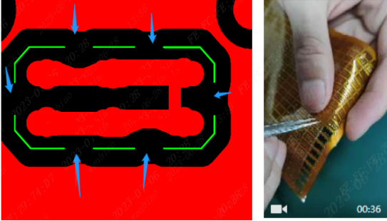 (4)尽量不要设计大面积露铜区域,否则会有皱褶