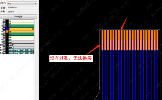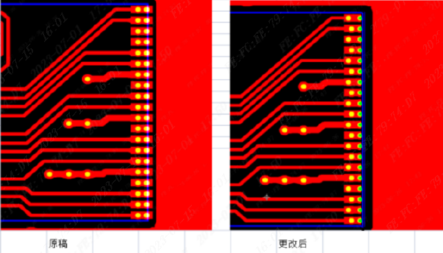 (6)我司暂不支持 缕空板,反向手指需增加焊盘及过孔来实现换层