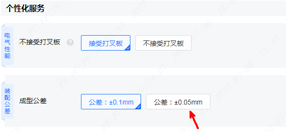 (9)金手指外形公差默认为+/-0.1mm,如果要求+/-0.05mm,需要在下单时选择
