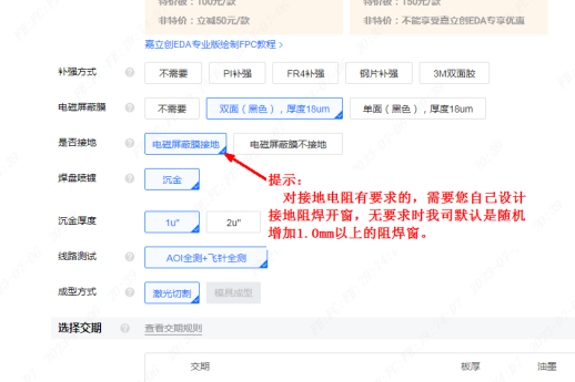 (2)下单时有插拔金手指的一定要备注总厚度要求,总厚度一般在连接器规格书中有,选PI补强厚度时不能直接用总厚度减去FPC板厚来计算。可以通过嘉立创金手指PI厚度计算器来计算。
