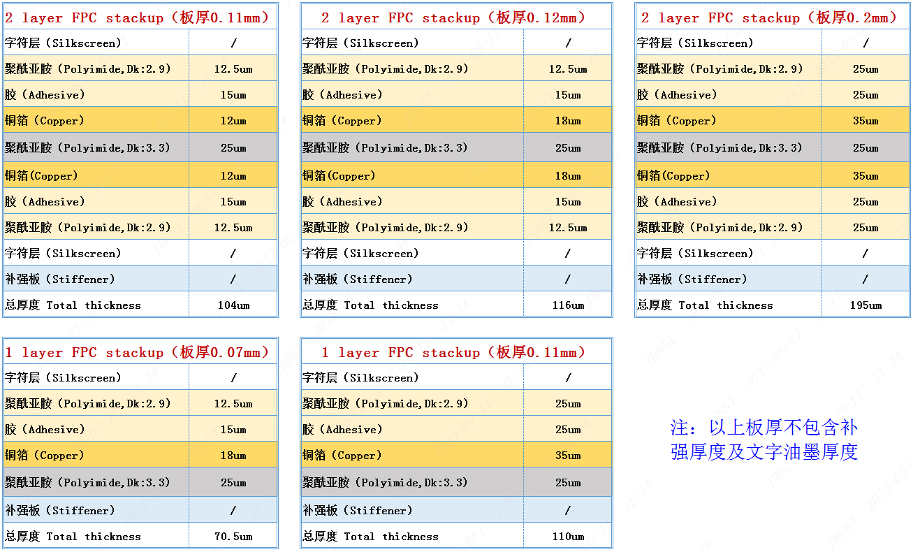 下单选择的板厚是包含覆盖膜、铜厚,和板材PI厚度的,如果板上有无铜区或没有覆盖膜,板厚会相应减薄,请设计时特别留意
