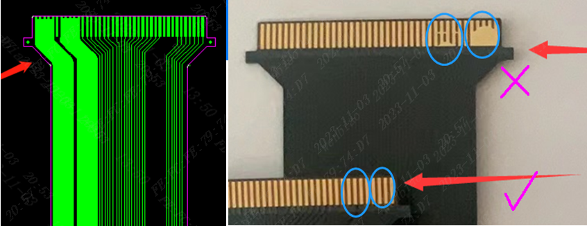 (3)焊接金手指上下覆盖膜要错开0.3mm以上,防止折断