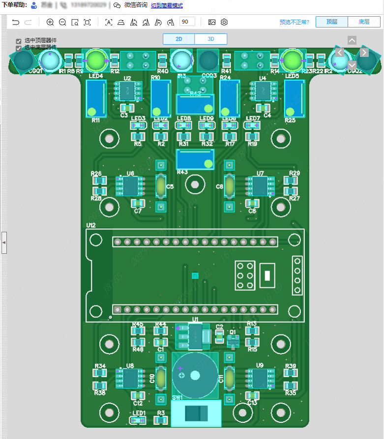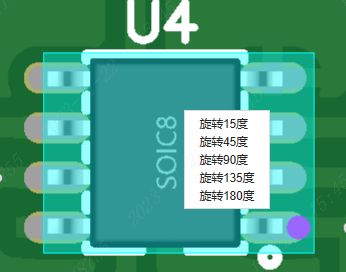 步骤1: 鼠标点击需要旋转的器件,单击鼠标右键。 会弹出旋转的度数,选择需要旋转的度数就可以了,亦或是点击需要旋转的器件按键盘空格键也可以旋转器件的方向 ,如需要取消选中,鼠标点击空白处即可 例如下图: