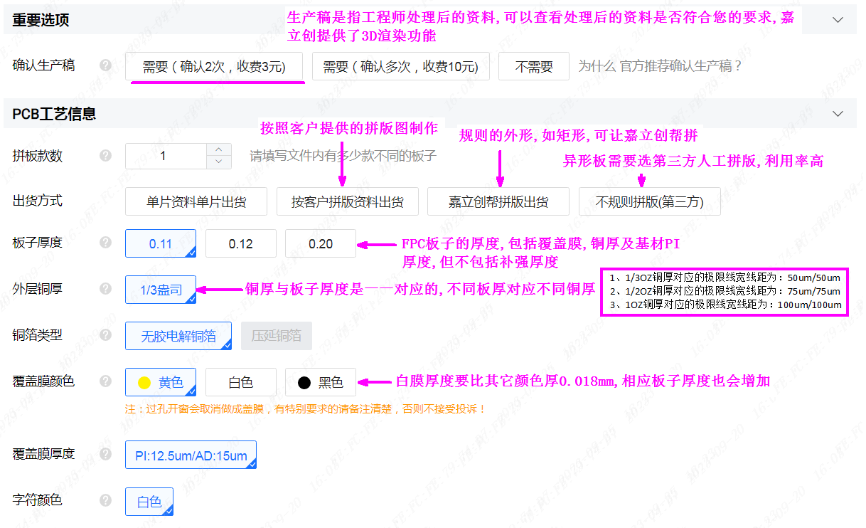 11.审核后可以付款,生产稿完成后需要确认生产稿,然后等板子到手就可以了。需要拼版的板,做SMT的话,需要等PCB审核后才能下SMT。提交订单后建议关注【嘉立创FPC】公众号,可随时查看生产进度信息。