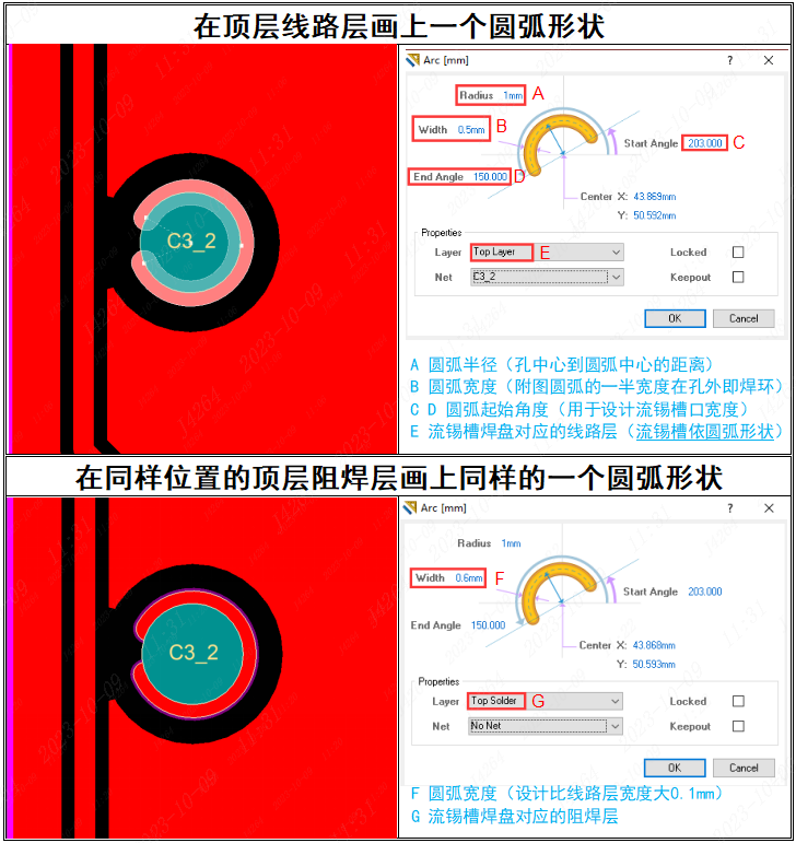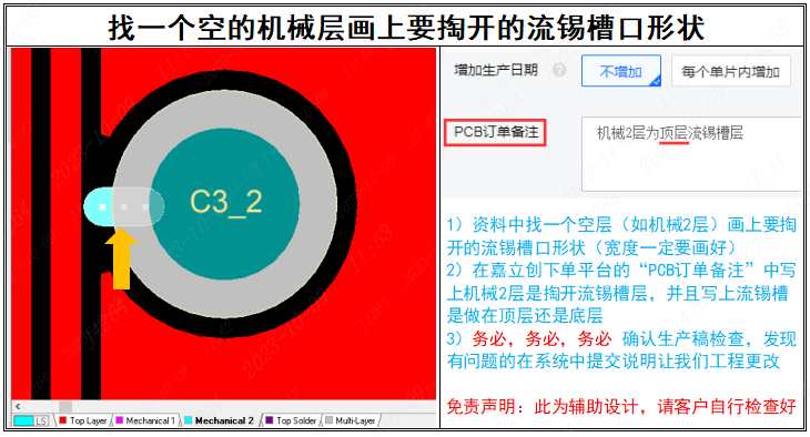 在PCB进行机器组装器件时(如波峰焊),为了防止部分需要二次焊接的元器件的焊盘堵孔,就需要在PCB焊盘上面开个过锡槽,以便过波峰焊时,这些焊锡会流掉。