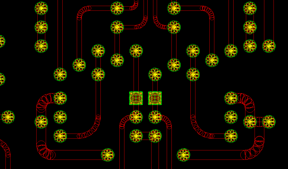 针对上图所展示的案例,我们的建议的方法是,原稿的PAD尽量设计成下面的效果,每个PAD都是独立的图元,大多数是圆形,或者矩形,不要求所有的PAD都这样,能达到八成以上就可以,比如过孔的PAD设计成圆形是一点问题都没有。