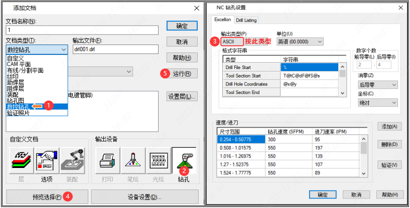 8.输出钻孔文件:检查输出类型为ASCII,然后预览检查无误后,点"运行"输出